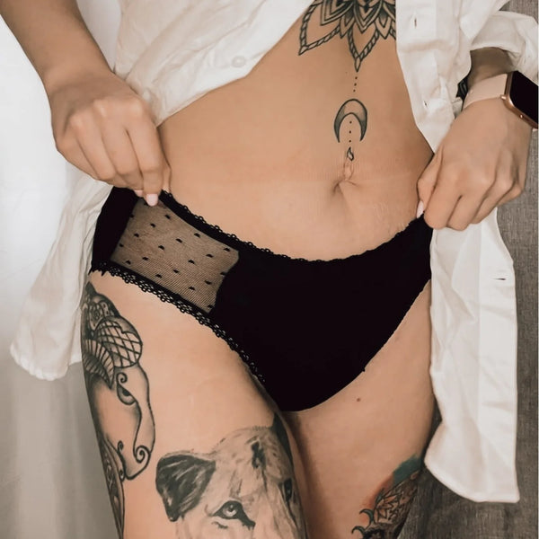 Unsere Periodenunterwäsche wurde von einer Ärztin und einer Gesundheits- und Krankenpflegerin, entwickelt und erfüllt höchste Ansprüche an Sicherheit und Komfort. Die weichen Gummibünde und Spitzenränder sorgen für ein angenehmes Tragegefühl. Alle Modelle sind vegan und biozidfrei.